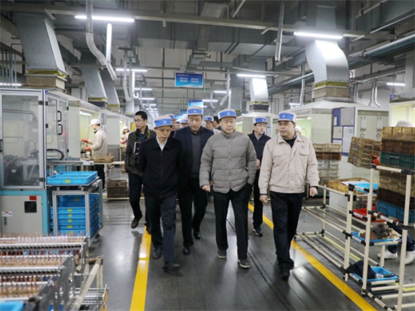 Mr. Shao visited 4-way reversing valve workshop. Mr. Zhang introduced the operation of Sanhua factories in the new year, hot production lines and modern manufacturing levels s up well.