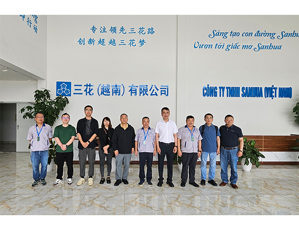 On June 1, Xu Dongsheng, Vice President of China Household Electrical Appliances Association, led a delegation to visit Sanhua Vietnam. They were received by Chen Xiaoming, deputy general manager of Sanhua Vietnam, Zhang Liping, assistant general manager, and Yu Boyang, director of the administration department, and other representatives.